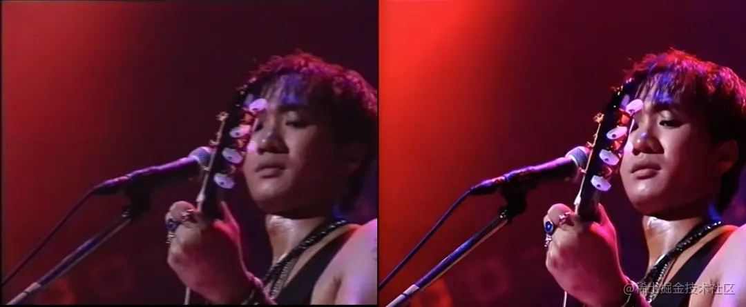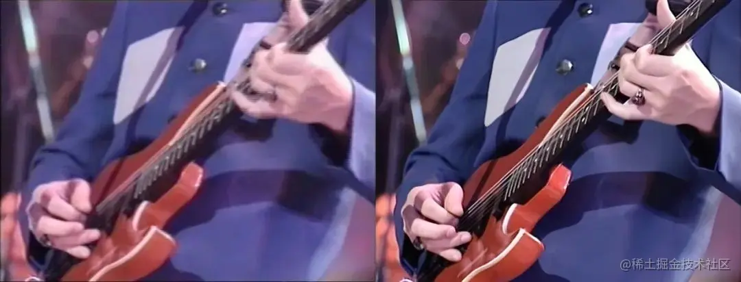 对比可以看出,乐队拨弄琴弦的身影,变得更加清晰。