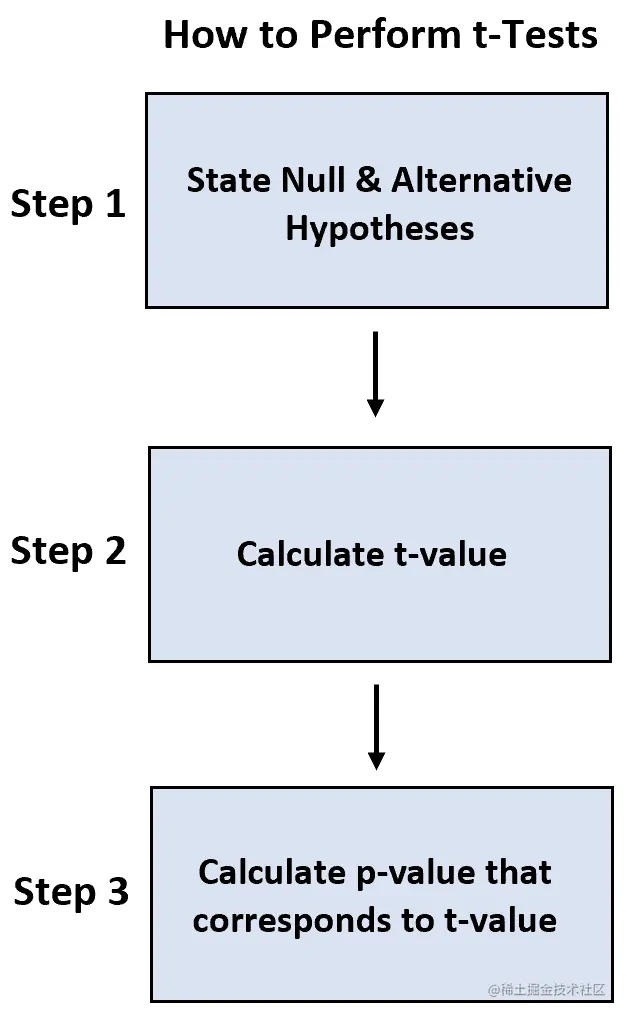 请注意,我们只是把t值作为计算p值的一个中间步骤。p值是我们感兴趣的真实值,但我们必须先计算t值。
