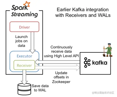当我们收到数据并在Spark存储中成功复制时,这个接收器会确认数据源。在可靠接收器的情况下,数据是通过store(...) 方法发送的,该方法接收类似集合的对象(Iterator, ByteBuffer, 或ArrayBuffer)的参数。这是一个阻塞方法,只要Spark不通知接收方数据保存成功,它就不会返回。返回后,接收器可以确认数据接收的来源。