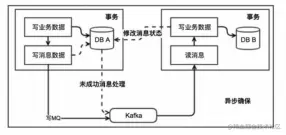 • 在分布式事务操作的另一方从消息队列中读取一个消息,并执行消息中的操作。不在同一个节点上,就涉及分布式事务。
