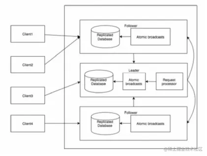 • leader 服务器与每个 follower 之间都有一个队列,leader 将消息发送到该队列