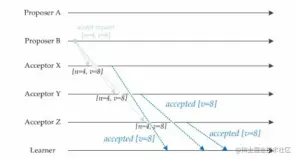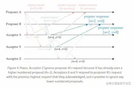Paxos 算法通过投票来对写操作进行全局编号,同一时刻,只有一个写操作被批准,同时并发的写操作要去争取选票,只有获得过半数选票的写操作才会被批准(所以永远只会有一个写操作得到批准),其他的写操作竞争失败只好再发起一轮投票,就这样,所有写操作都被严格编号排序。编号严格递增,当一个节点接受了一个编号为 100 的写操作,之后又接受到编号为 99 的写操作(因为网络延迟等很多不可预见原因),它马上能意识到自己数据不一致了,自动停止对外服务并重启同步过程。任何一个节点挂掉都不会影响整个集群的数据一致性(总 2n+1 台,除非挂掉大于 n 台)