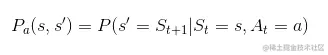 - Pa - 代表了 概率 即在某个状态下的行动 s ,将在时间步骤 t, ,将在时间步骤 s' , t+1。