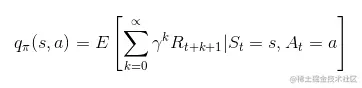 这个函数 Vπ(s) 被称为政策π的 状态价值函数 。与此类似,我们可以定义在政策π下的状态 a ,作为预期奖励,如果代理人从状态 s开始*,* 采取行动 a 并遵循政策π - qπ*(s, a) 。*