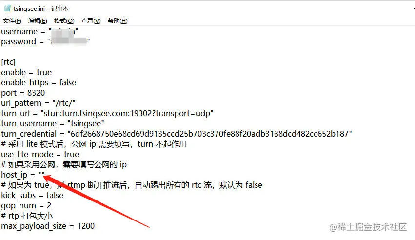 新版本的EasyCVR取消了之前繁琐的stun打洞程序,但走公网访问则需要配置rtc的收流地址。配置如下: