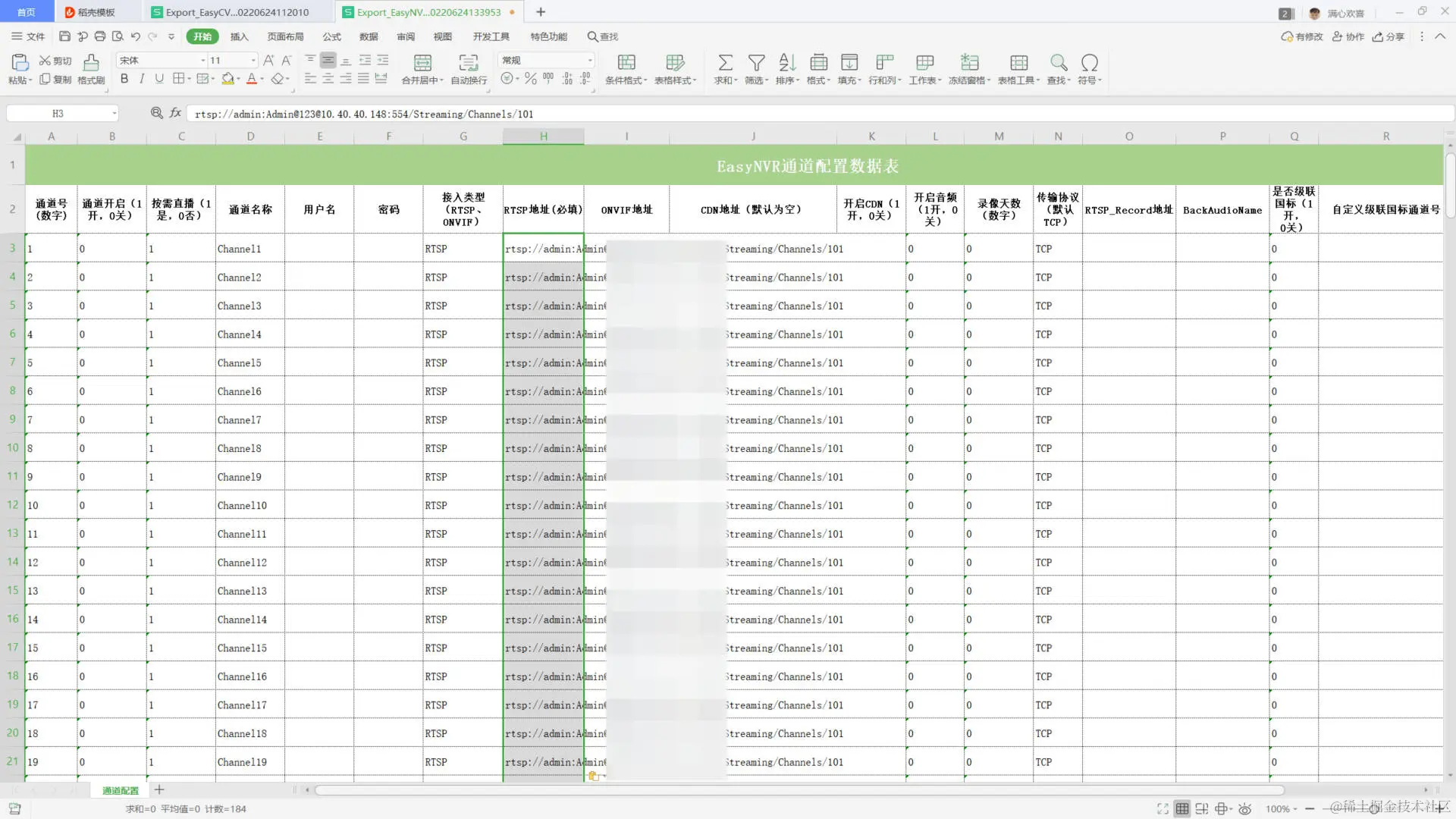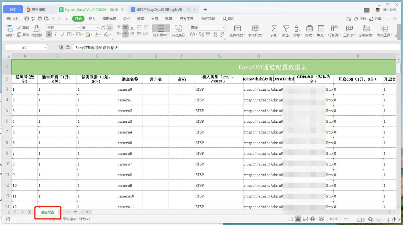 4)将EasyCVR内的名称和RTSP地址等信息,拷贝到EasyNVR的表里: