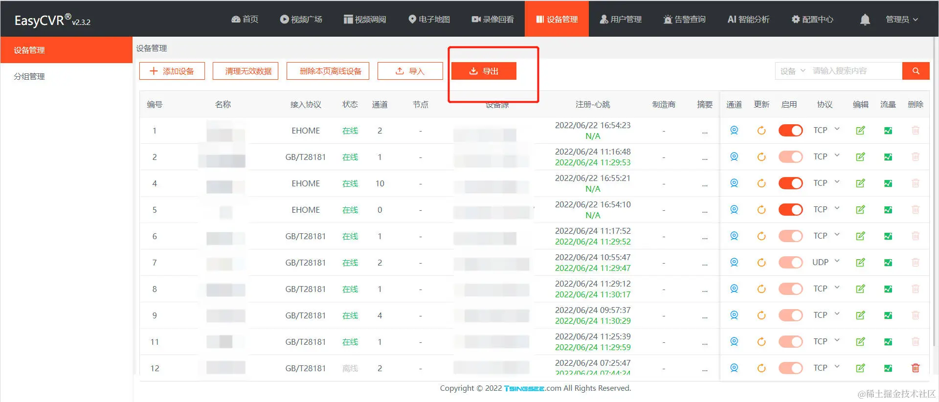 在此前的文章中,我们和大家介绍过关于TSINGSEE青犀视频平台可支持数据迁移的技术文章,感兴趣的用户可以自行搜索了解。今天来和大家分享一下:如何将EasyCVR的RTSP设备接入数据迁移到EasyNVR中?