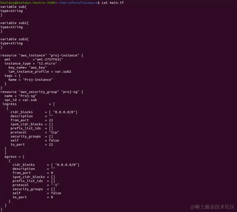 这就是一个在terraform中使用模块的例子。关于模块的更多细节,请参考这个。
