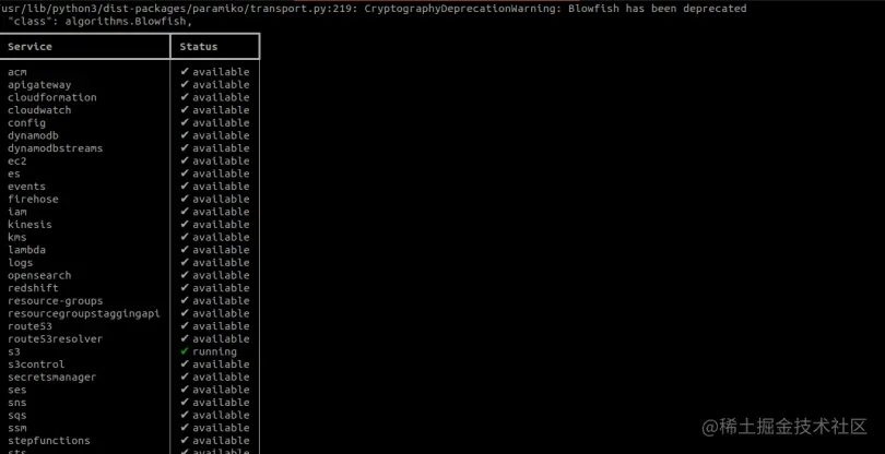 检查localstack下的各种服务