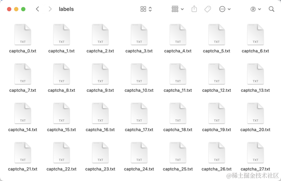 在这里,我已经将对应的标注结果都处理好了,可以直接使用,路径为 data/captcha/labels,如图所示: