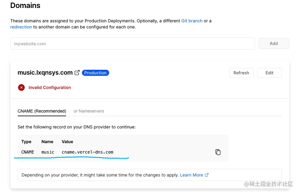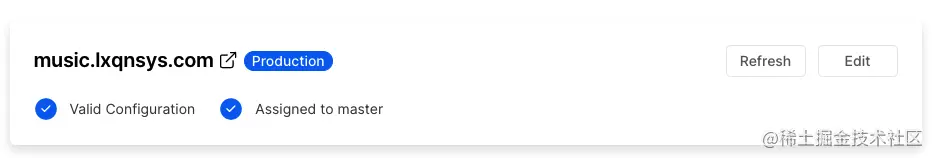 回到Vercel页面,会自动检测是否映射成功,最后等待证书生成完成,就可以通过我们自己的域名进行访问了: