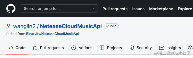 打开NeteaseCloudMusicApi项目仓库,点击右上角的【Fork】按钮: