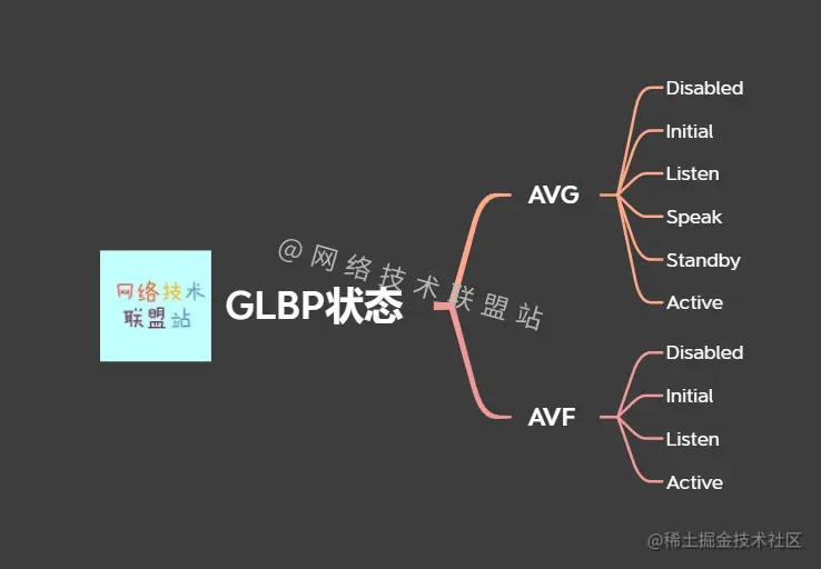 GLBP指定一个虚拟路由器作为AVG,负责流量转发和负载均衡,备份虚拟路由器称为 AVF,充当虚拟网关的被动故障转移,如果 AVG 出现故障或无法访问,则 AVF 将接管虚拟网关角色。