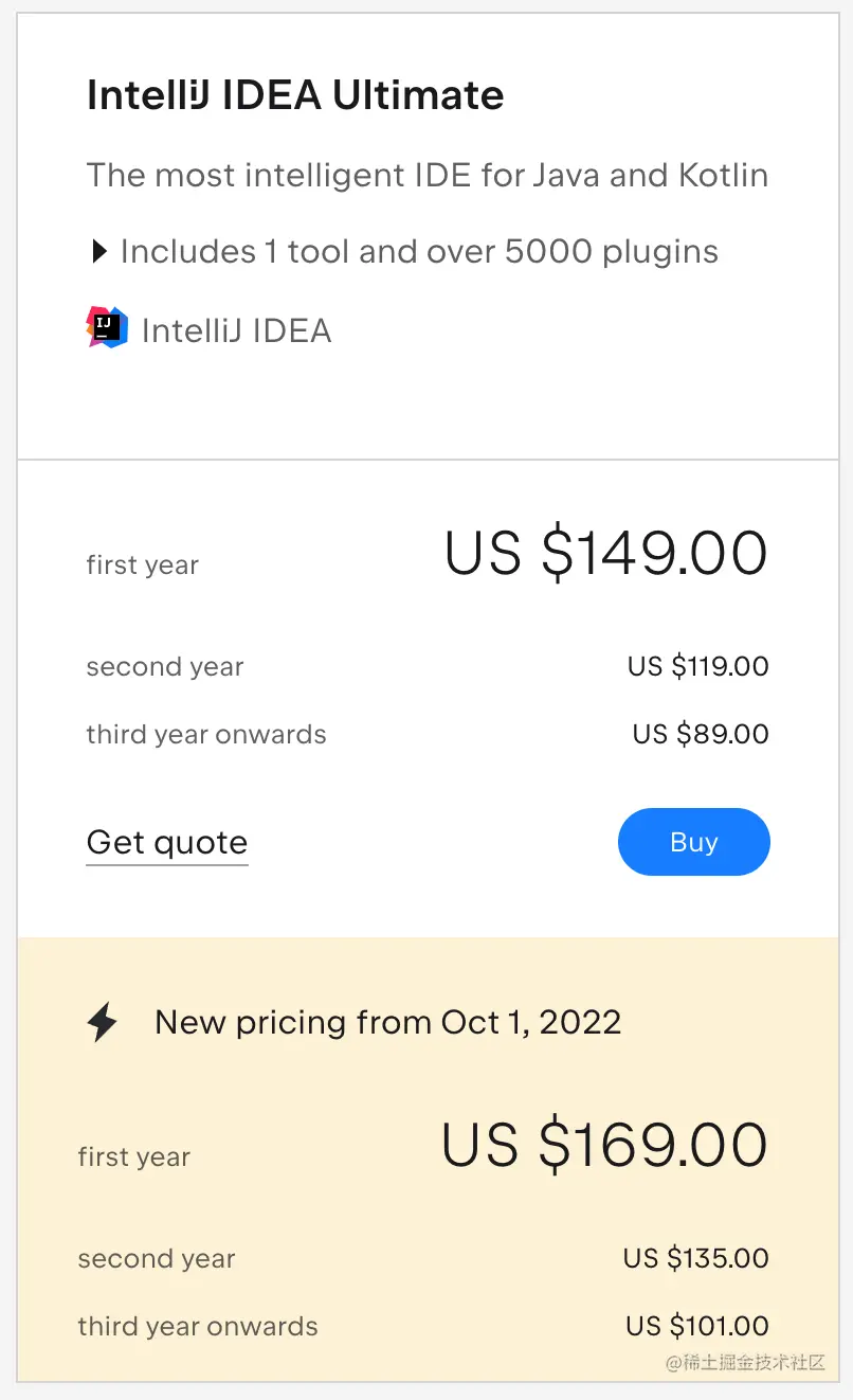我看了一下平时用得比较多的IntelliJ IDEA,对比了一下调整前后的价格。