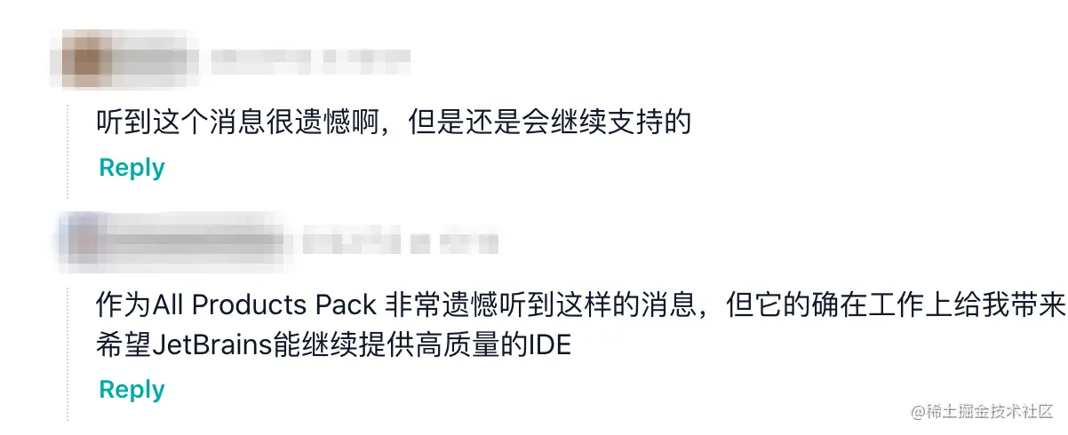这个调价信息发出之后,JetBrains的官博文章下面也增加了不少用户的评论,不少用户反馈: