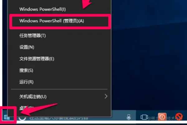一、打开win10系统,然后在桌面左下角右键点击“开始”在右键菜单中选择“Windows PowerShell(管理员)”,点击打开。