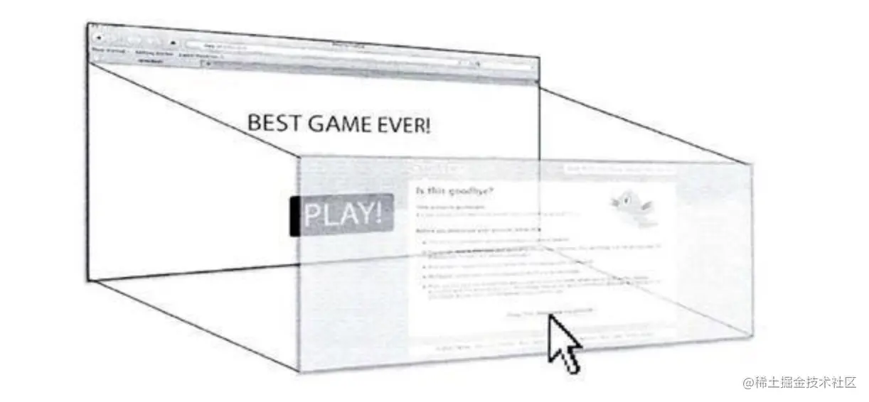 攻击者使用一个透明 iframe,覆盖在一个网页上,然后诱使用户在该页面上进行操作,此时用户将在不知情的情况下点击透明的 iframe 页面;