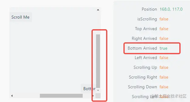 如上图所示,当滚动条触底的时候,useScroll能够识别出已经到达了底部。