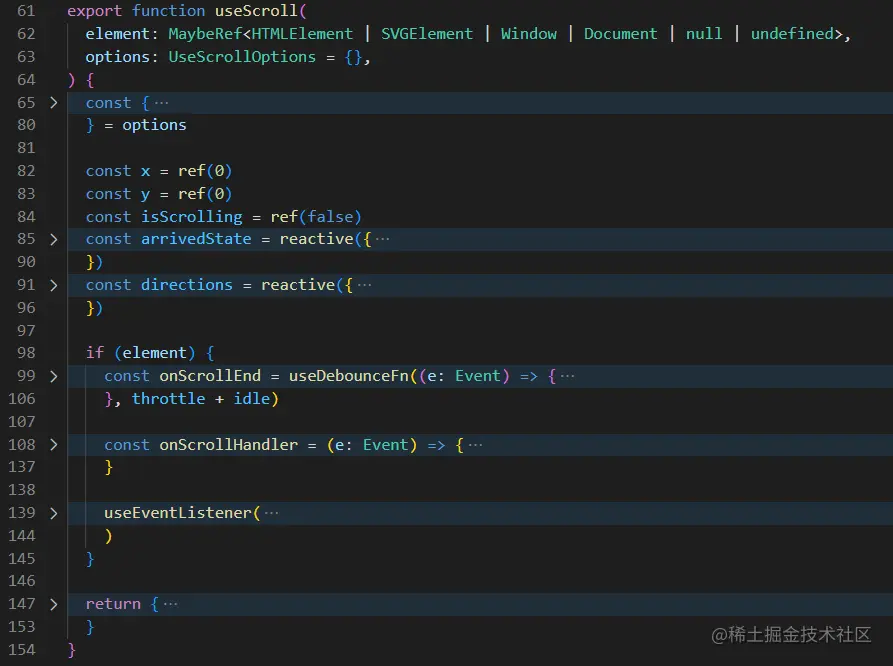 我们发现整个代码流程包括了参数的解析,状态的定义,滚动结束回调函数,滚动监听处理函数,最后是返回值,我们依次来看一下。