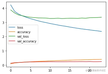 704/704 [==============================] - 97s 137ms/step - loss: 4.1752 - accuracy: 0.1336 - val_loss: 3.9696 - val_accuracy: 0.1392