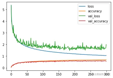 704/704 [==============================] - 149s 210ms/step - loss: 1.9561 - accuracy: 0.4683 - val_loss: 2.5060 - val_accuracy: 0.3760