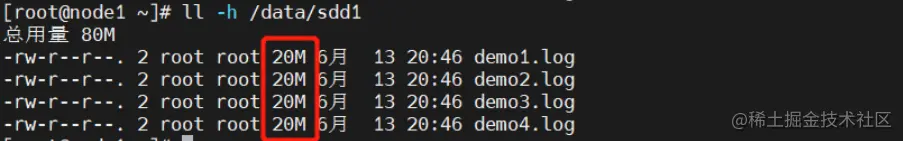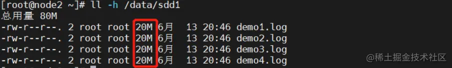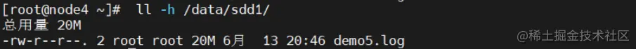 -rw-r--r--. 2 root root 20M 6月 13 20:46 demo4.log