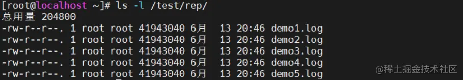 -rw-r--r--. 1 root root 41943040 6月 13 20:46 demo5.log