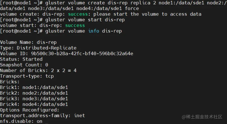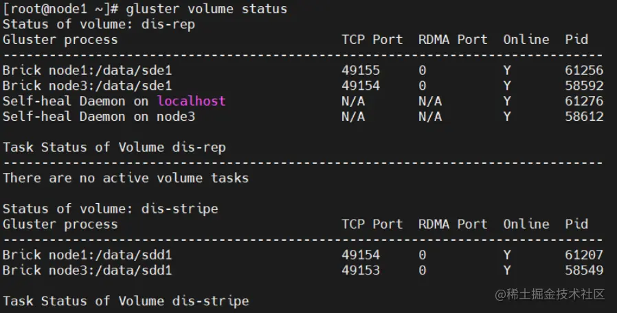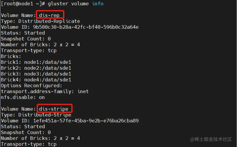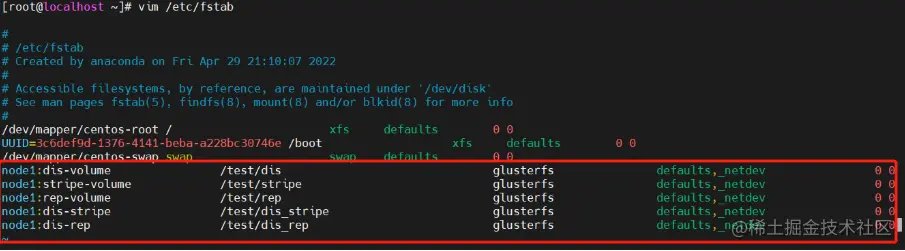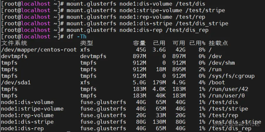 node1:dis-volume /test/dis glusterfs defaults,_netdev 0 0