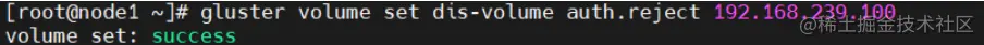 gluster volume set dis-volume auth.reject 192.168.239.100