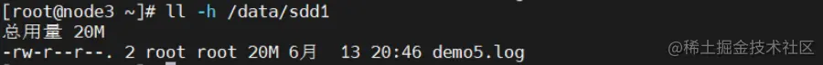 -rw-r--r--. 2 root root 20M 6月 13 20:46 demo3.log