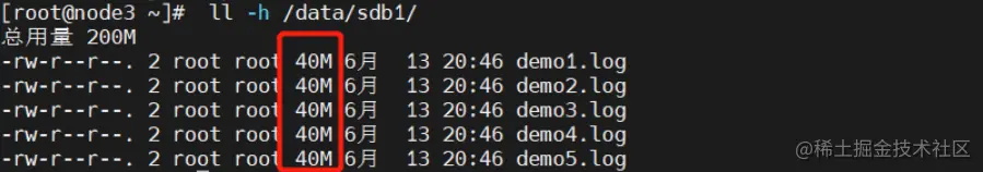 -rw-r--r--. 2 root root 40M 6月 13 20:46 demo3.log