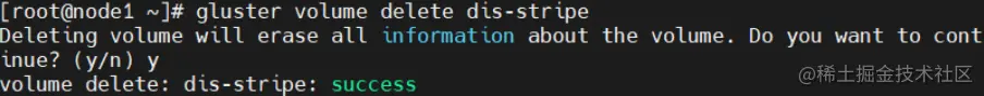 5.删除一个卷,注意:删除卷时,需要先停止卷,且信任池中不能有主机处于宕机状态,否则删除不成功