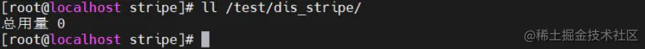 [root@localhost ~]# ll /test/dis_stripe/ #在客户机上测试没有数据