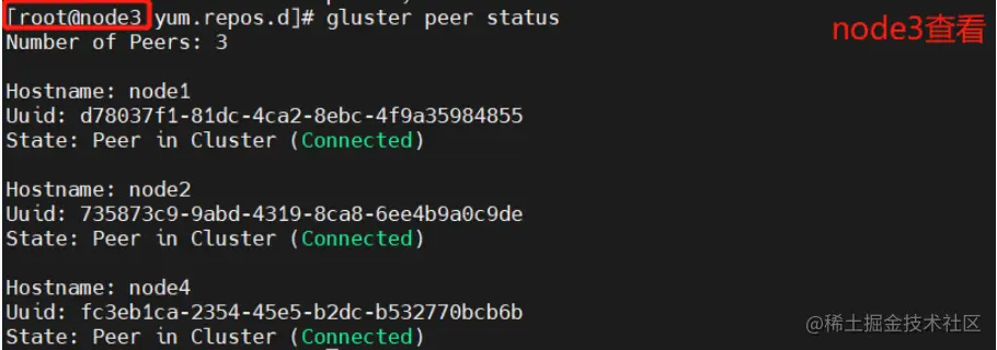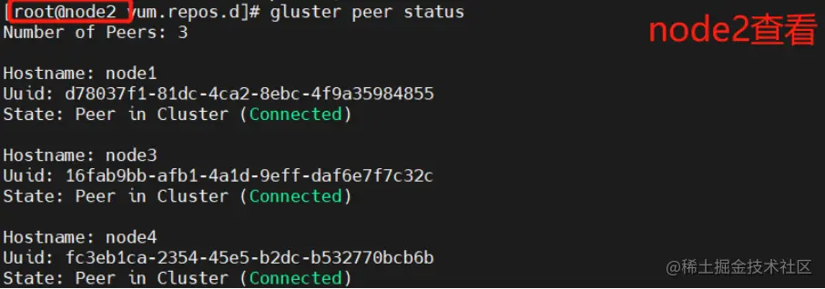 挂起 node2 节点或者关闭glusterd服务来模拟故障