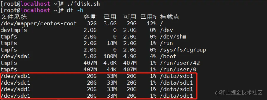 [root@node1 ~]# ls -lh /data/sdc1 #数据被分片50% 没副本 没冗余