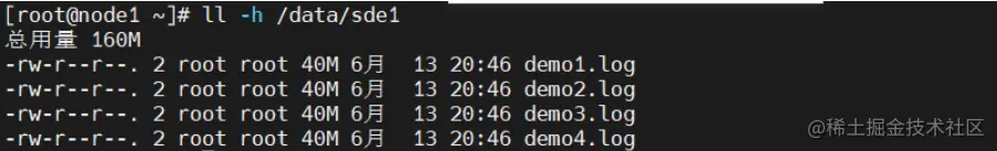 -rw-r--r--. 2 root root 40M 6月 13 20:46 demo1.log