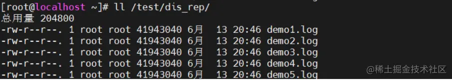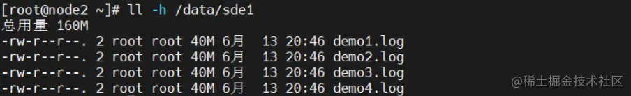 -rw-r--r--. 2 root root 40M 6月 13 20:46 demo4.log