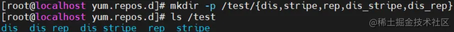 [root@localhost test]# ll /test/dis_rep/ #可以访问,分布式复制卷具备冗余性