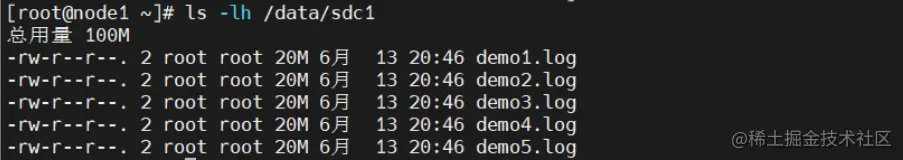 -rw-r--r--. 2 root root 20M 6月 13 20:46 demo5.log