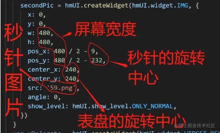 表盘的旋转中心:修改成上图里的second_centerX和second_centerY的值