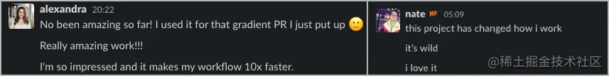 但不要只相信我的话。看看 Alexandra 和 Nate 的反馈,在我将这个工作流程引入 The Browser Company 设置之前,他们已经非常精通了,这使得它更加令人印象深刻。