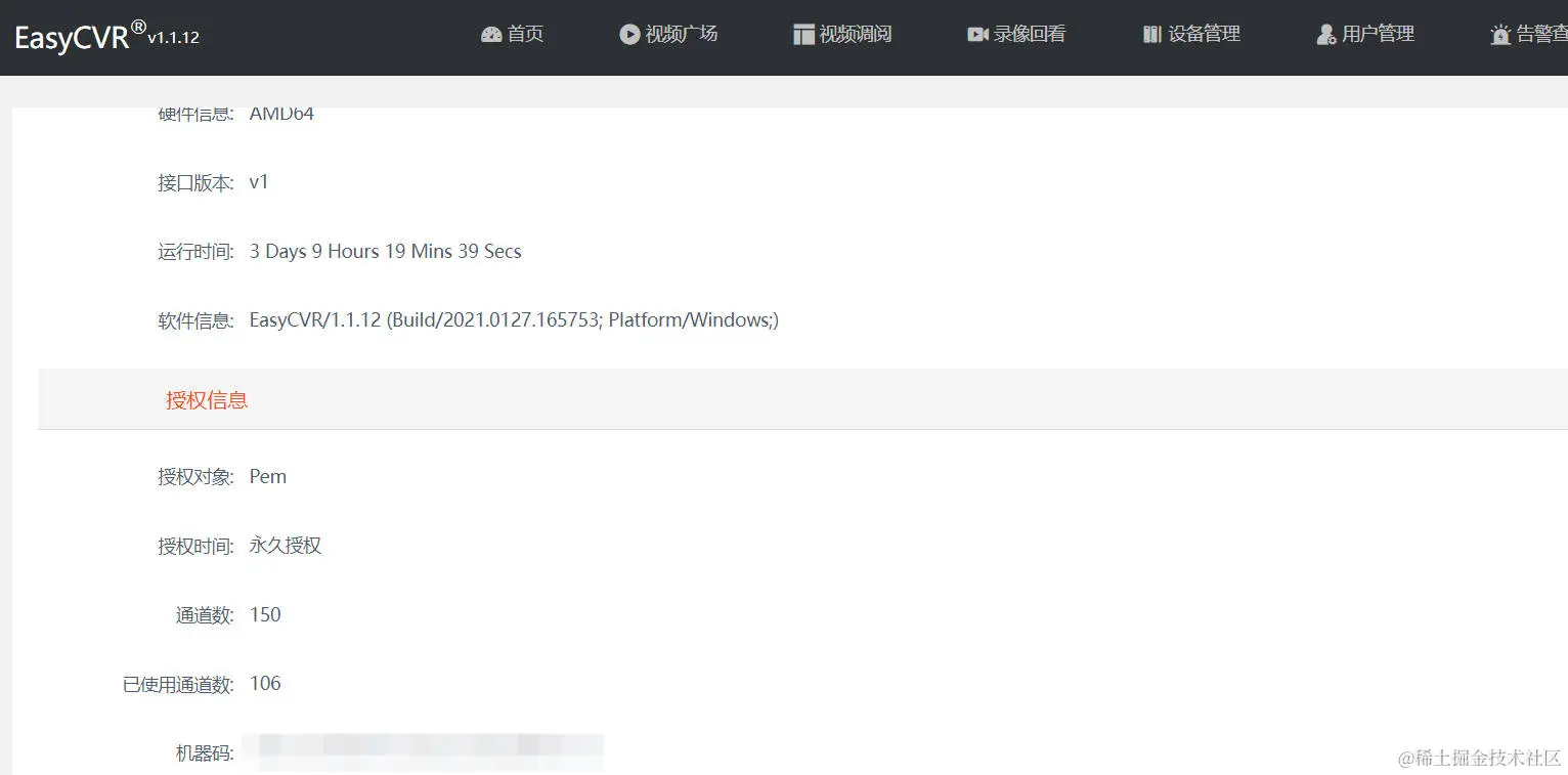 正常情况下,EasyCVR版本授权到期,web页面依旧可以登录,同时页面上也会提示403授权到期,但本次用户现场的版本还是未升级的老版本,同时也无法直接上传授权文件。