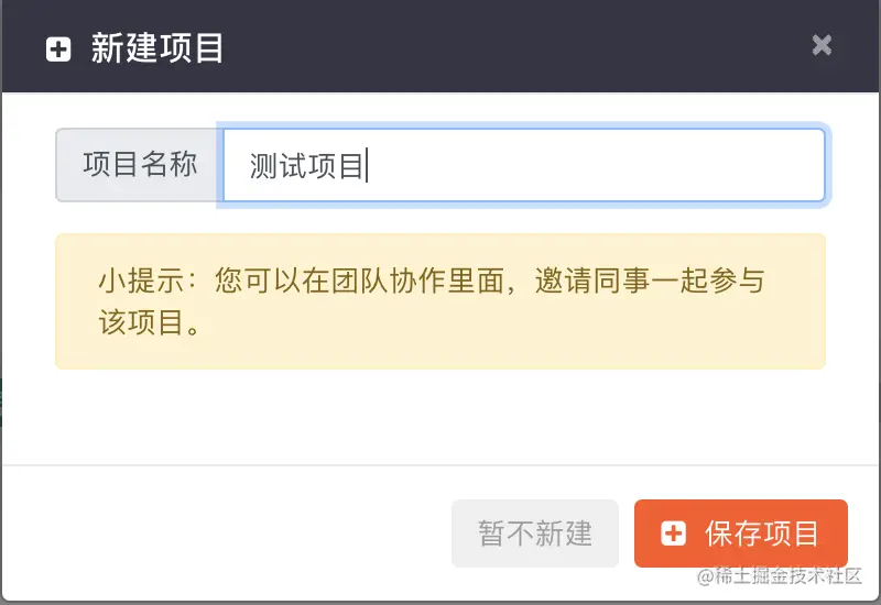 先进去apipost,首次需要注册一个账号,登陆后,会弹出一个【创建项目】的弹窗,填入您的项目名称(自定义,最好有意义比如:春节抢五福 项目)。这里我们输入【测试项目】(职业程序员,就是喜欢动不动就「测试XX」……)