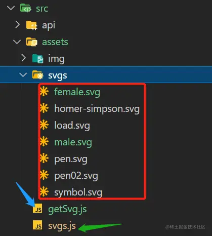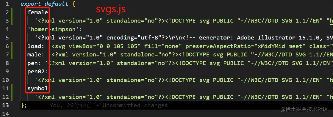 截取svg源文件,最终生成 svgs.js 文件,以key: value 的形式导出,配合下一步封装的Svg公共组件,在页面中就可以直接使用svg名字加载图标了😍