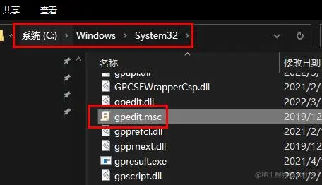1、打开“我的电脑”中的C盘,依次打开Windows—>system32查找是否存在gpedit.msc****文件。