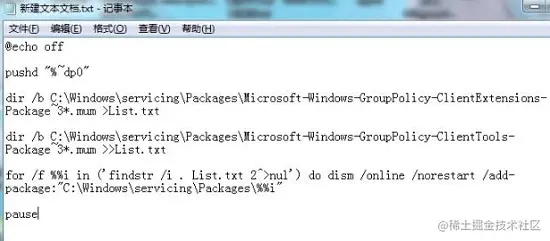 dir /b C:\Windows\servicing\Packages\Microsoft-Windows-GroupPolicy-ClientExtensions-Package~3*.mum >List.txt