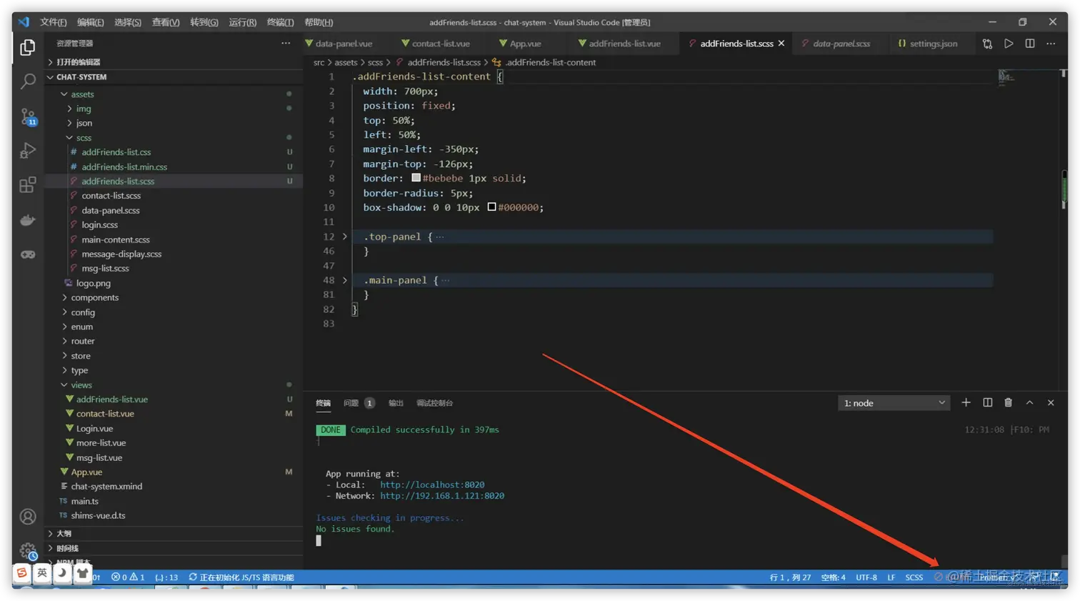 然后eslint就生效了,界面会出现如下: