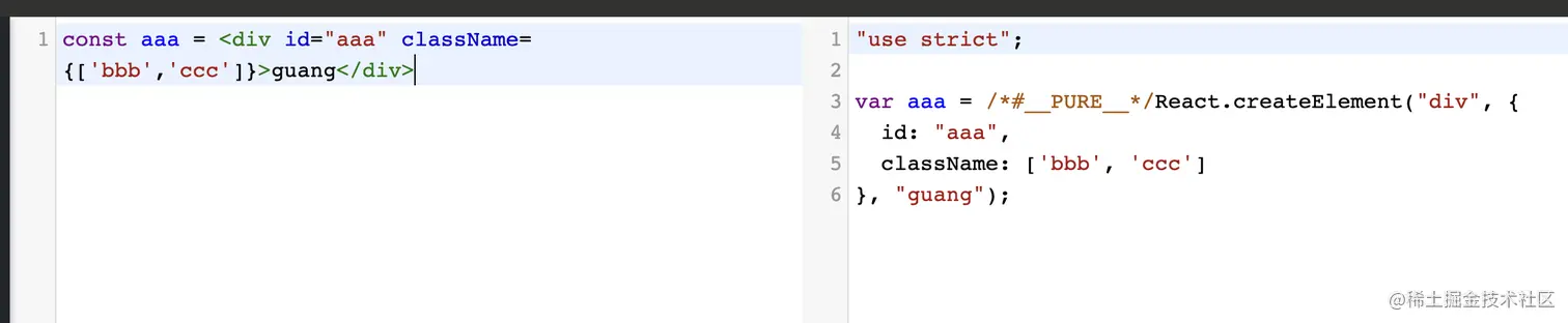 我们的目标是通过 vdom 描述界面,在 react 里会使用 jsx。