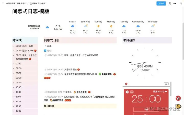 时间管理:间隙式日志模版