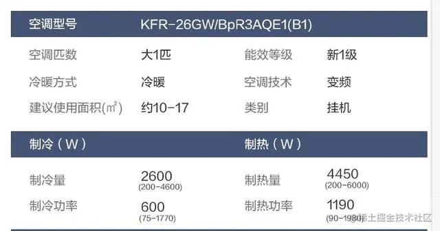 大1匹空调,是指制冷量2600瓦,适合在10--17平米的房间使用的空调。下面是奥克斯某大1匹空调的基本参数。